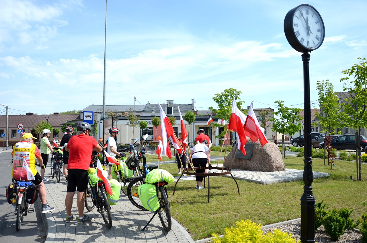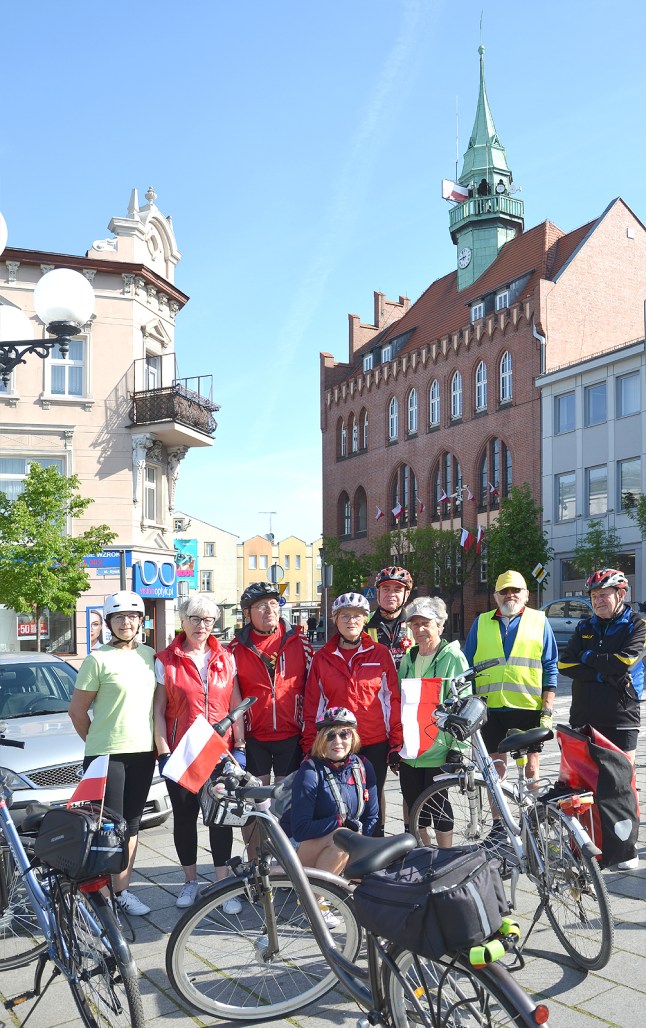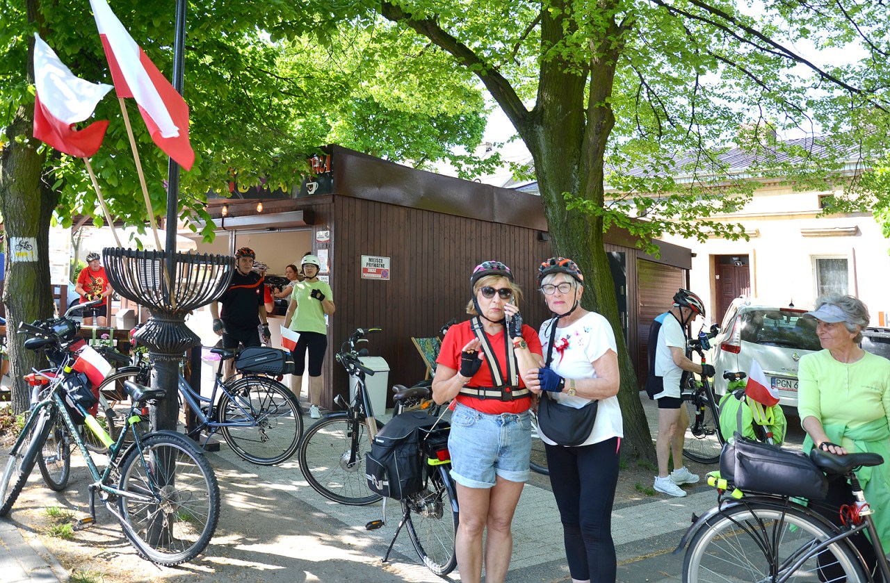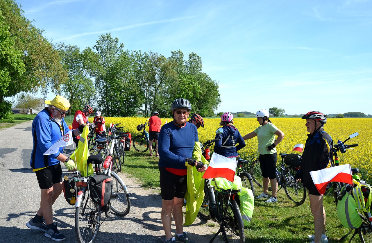 O godzinie 9.00 z rynku wrzesińskiego, w grupie 11 osób wyruszyliśmy w kierunku Pakszyna zobaczyć jak w maju, przed kwitnieniem, wygląda pole lawendowe. Po krótkim odpoczynku i wypiciu pysznej kawy pojechaliśmy do Czerniejewa na lody. Ulice miasta były pięknie przystrojone narodowymi barwami. Byliśmy też w parku pałacowym przy Bażantarni. Cieszyliśmy się, że w tym dniu na trasie rajdu powiewały flagi biało–czerwone. Po drodze często zatrzymywaliśmy się przy kwitnących bzach i pachnących żółtych polach rzepaków.