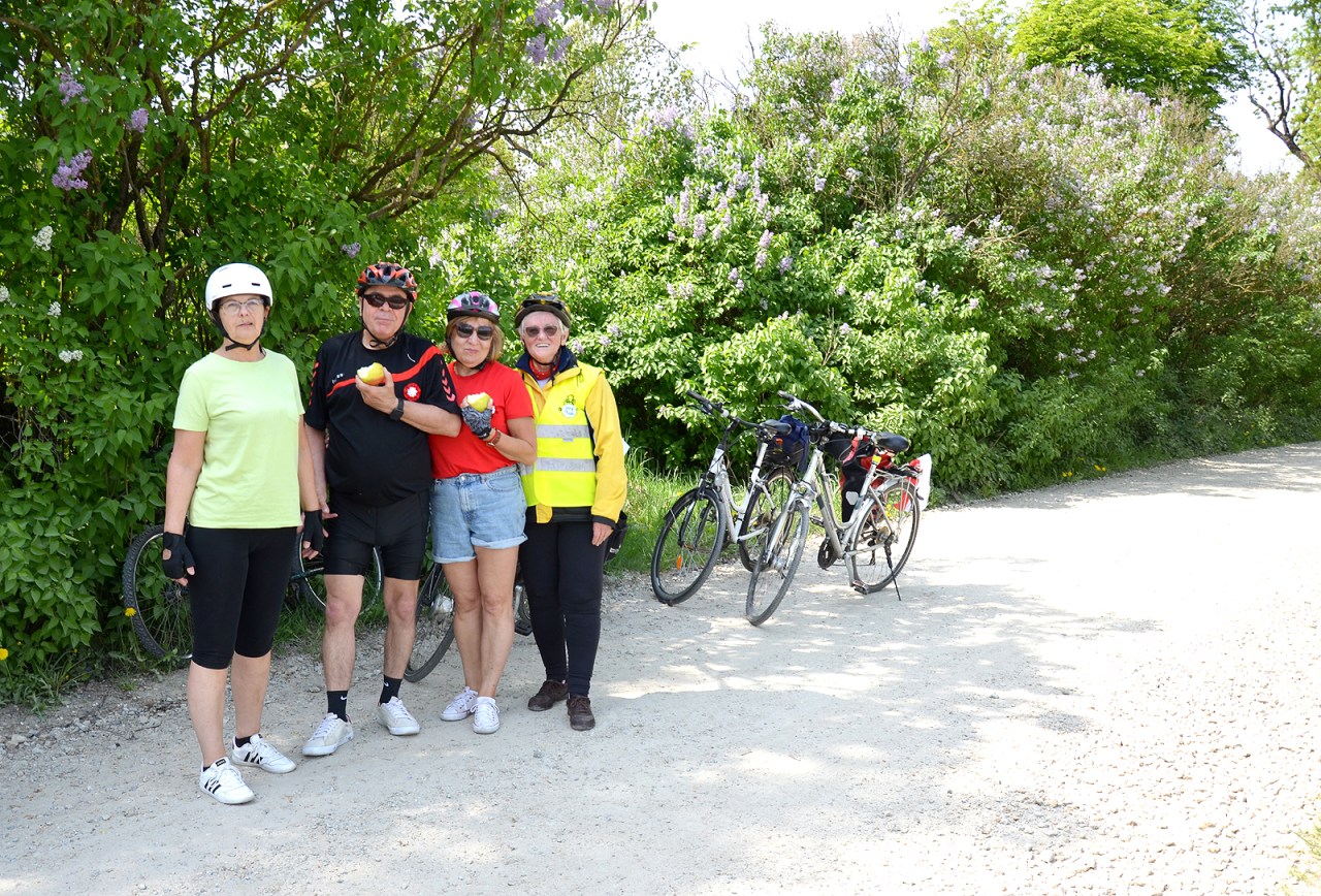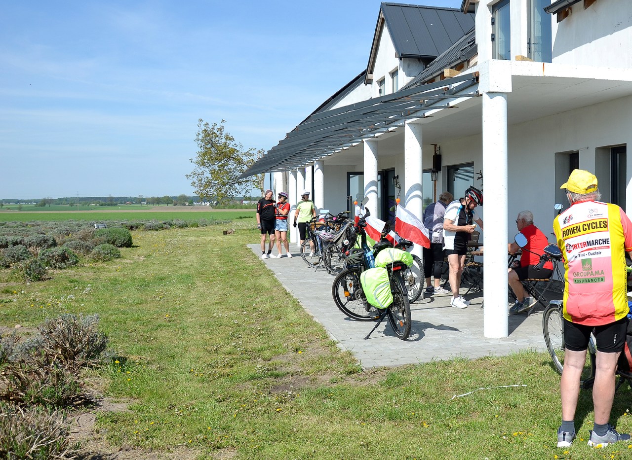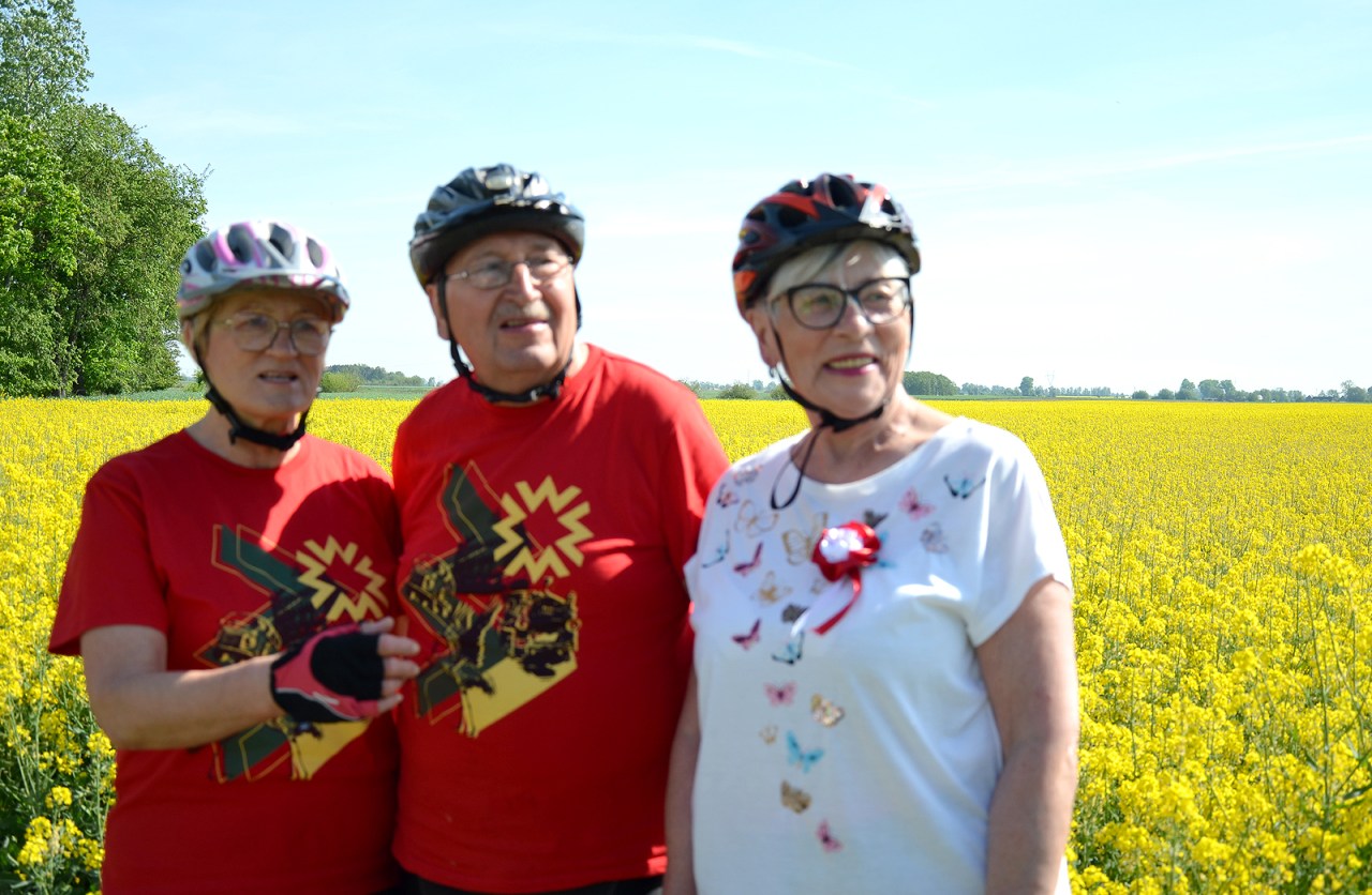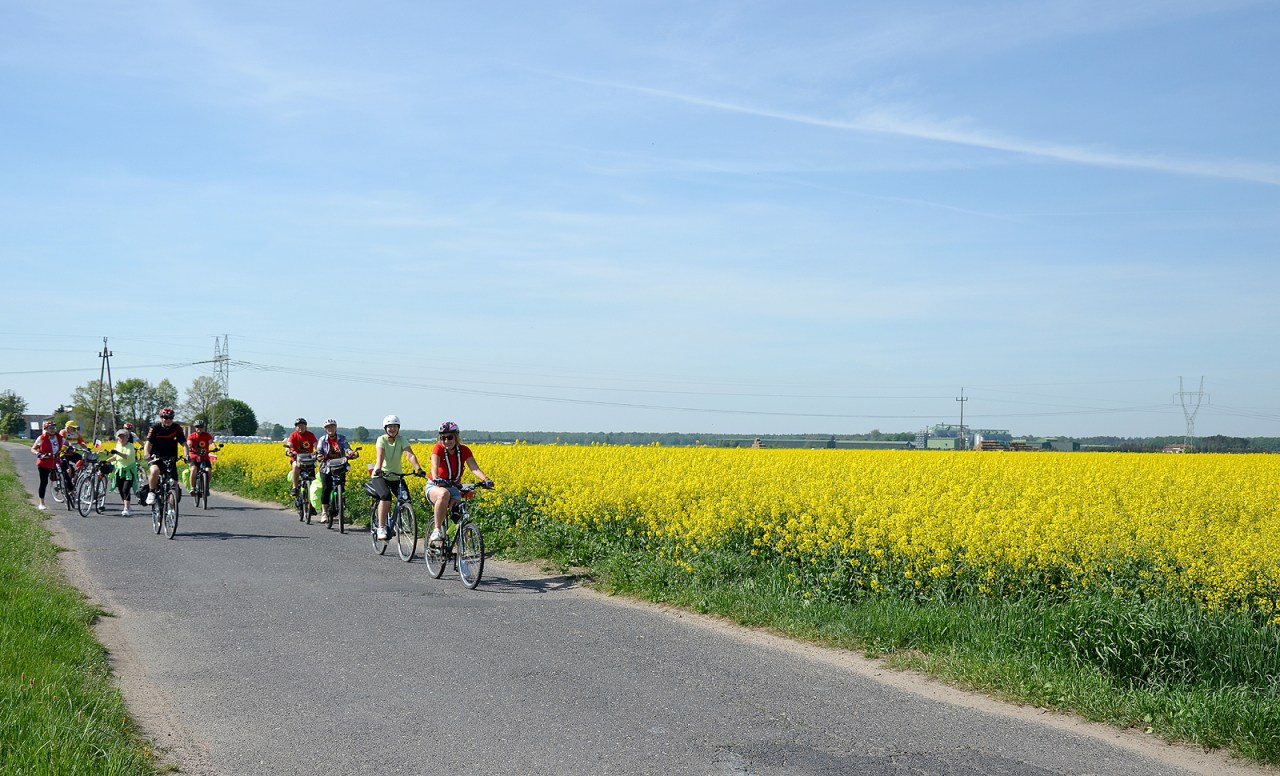 O godzinie 9.00 z rynku wrzesińskiego, w grupie 11 osób wyruszyliśmy w kierunku Pakszyna zobaczyć jak w maju, przed kwitnieniem, wygląda pole lawendowe. Po krótkim odpoczynku i wypiciu pysznej kawy pojechaliśmy do Czerniejewa na lody. Ulice miasta były pięknie przystrojone narodowymi barwami. Byliśmy też w parku pałacowym przy Bażantarni. Cieszyliśmy się, że w tym dniu na trasie rajdu powiewały flagi biało–czerwone. Po drodze często zatrzymywaliśmy się przy kwitnących bzach i pachnących żółtych polach rzepaków.