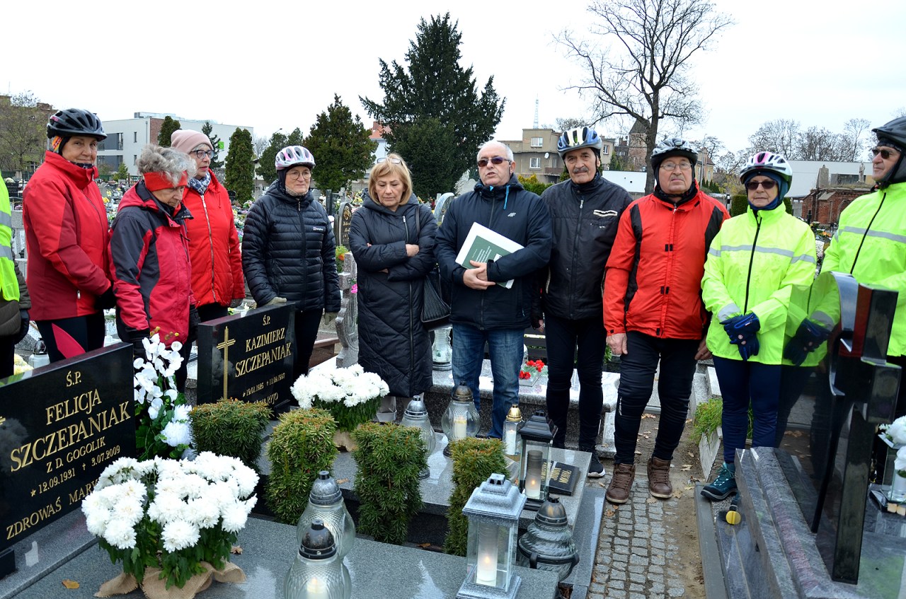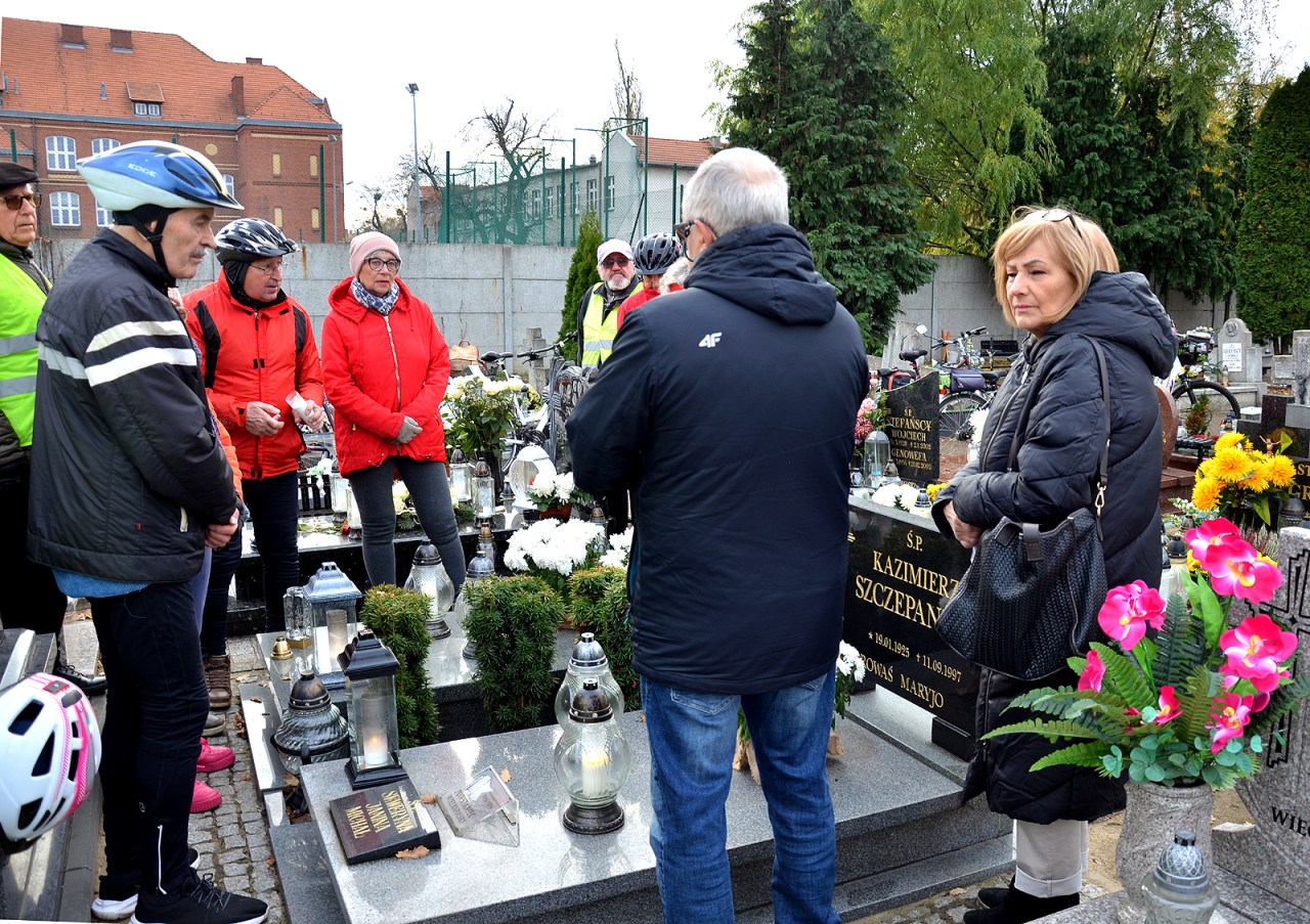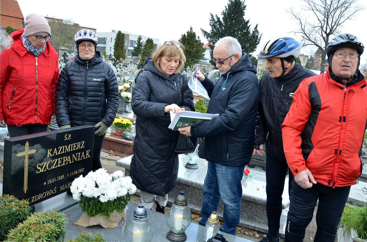 W grupie 16 osób spotkaliśmy się na parkingu przy ulicy Gnieźnieńskiej i na tle muralu zrobiliśmy pamiątkowe zdjęcie. W spotkaniu uczestniczył wnuk powstańca pan Paweł Szczepaniak wraz z żoną. Następnie podeszliśmy do Pomnika Powstańców Wielkopolskich na cmentarzu parafialnym. Po zapaleniu znicza i zrobieniu wspólnej fotografii podeszliśmy do grobu rodzinnego Michała Szczepaniaka. Po zapaleniu znicza wysłuchaliśmy ciekawej, obszernej informacji o życiu Michała zwłaszcza jego powstańczej działalności.
