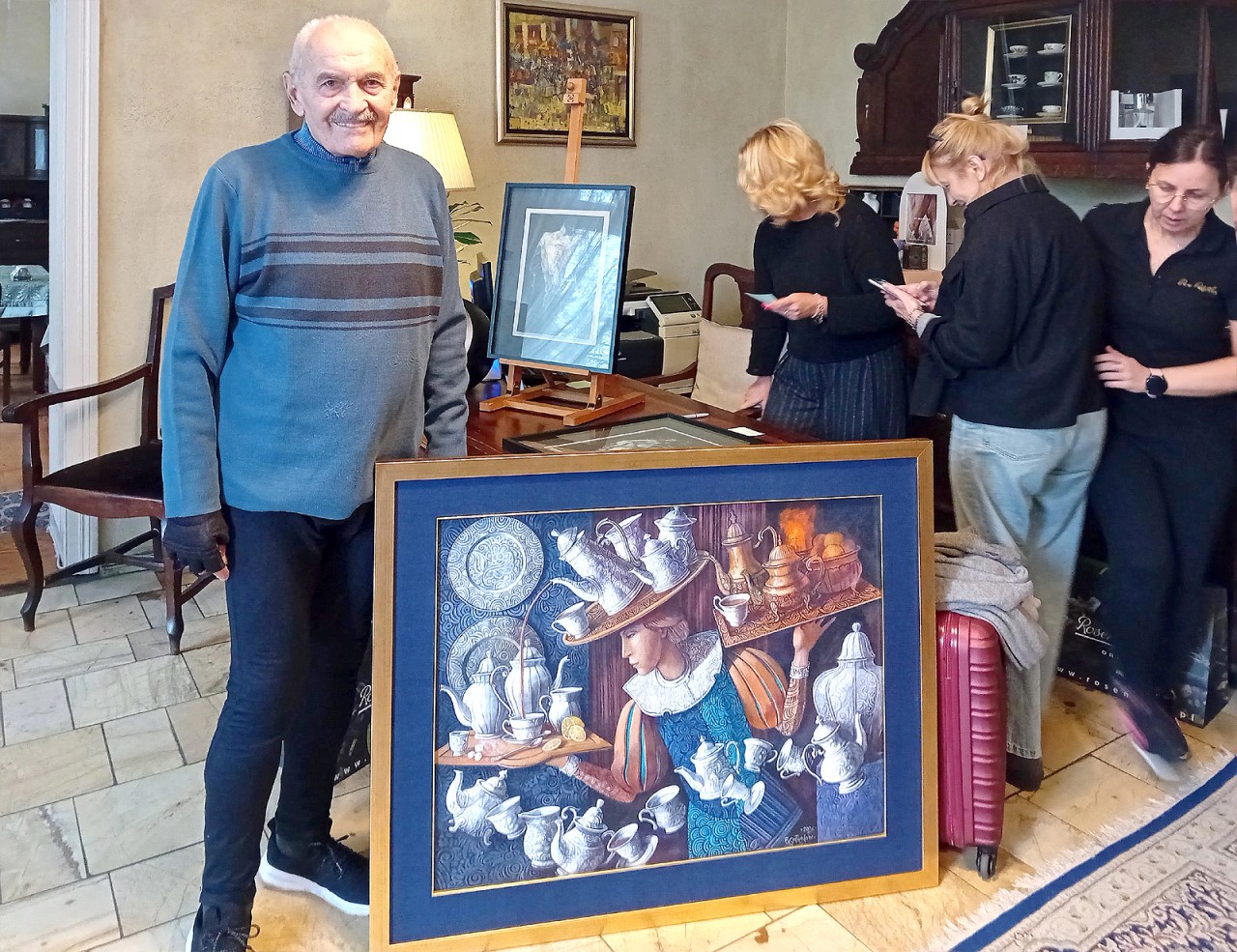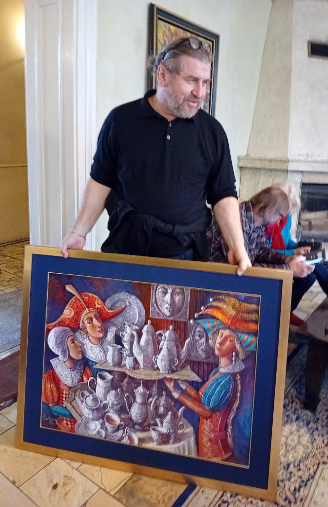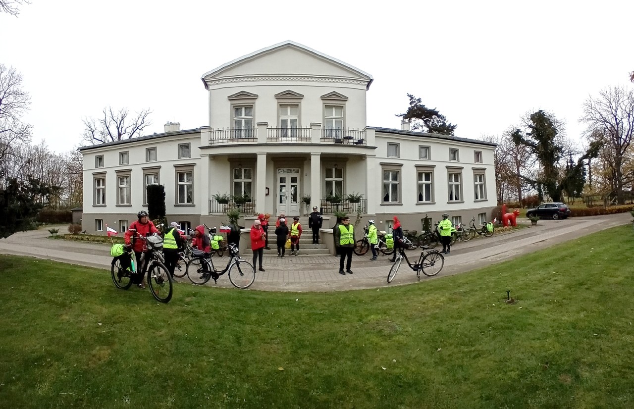 Po miłej i ciekawej rozmowie z rodziną Powstańca pożegnaliśmy się, by kontynuować nasze świętowanie w nieco innej, sportowej formule. Postanowiliśmy podjechać do dworu w Podstolicach, gdzie kończył się Jesienny plener malarski. Mieliśmy szczęście spotkać paru artystów – malarzy, którzy właśnie swoje prace przewozili do Wrześni, do galerii Farnej. Wypiliśmy pyszną kawę, (jabłecznik też był smakowity), przy sprzyjającym wietrze wróciliśmy do Wrześni zadowoleni ze wspólnie spędzonego czasu.