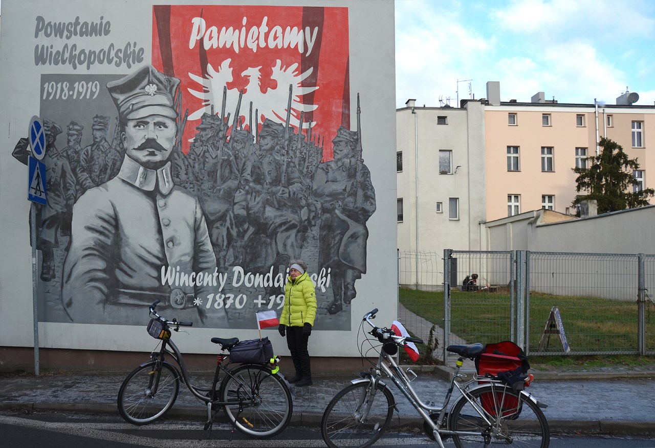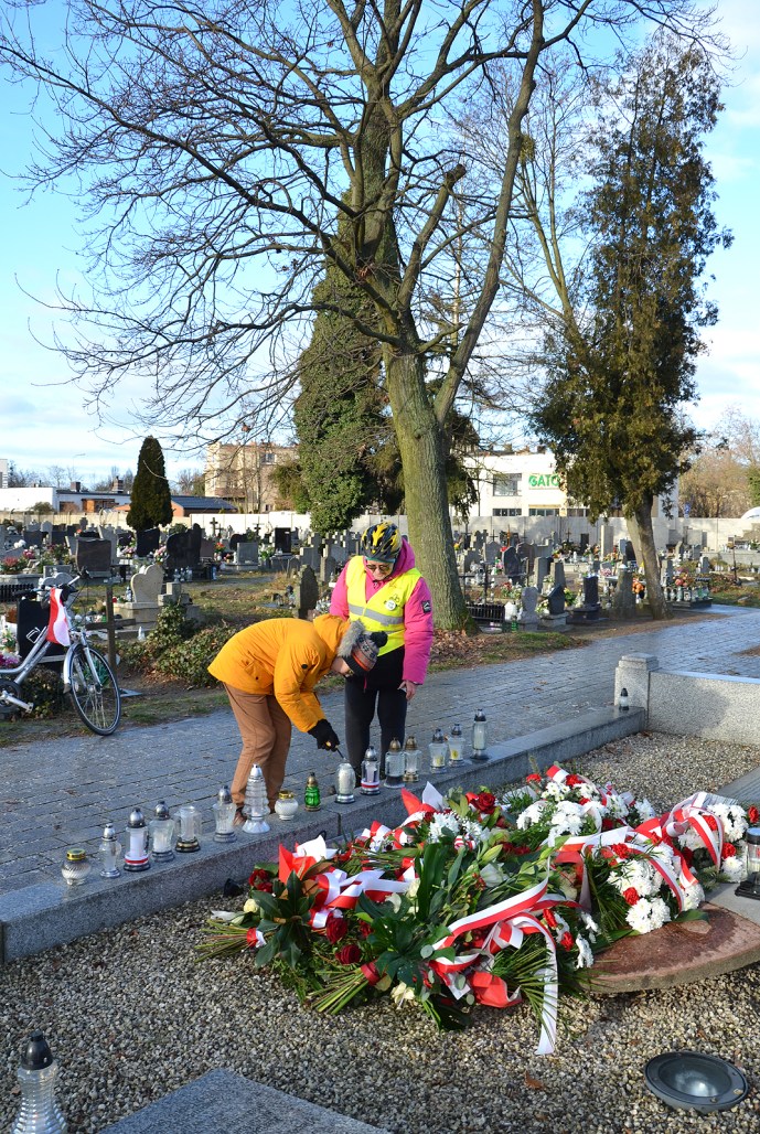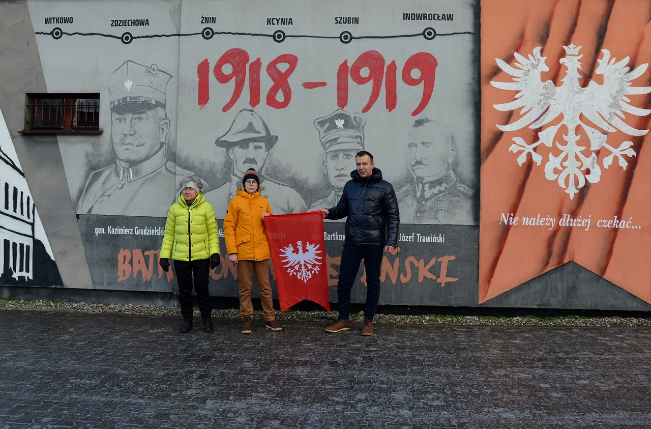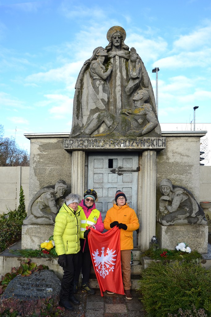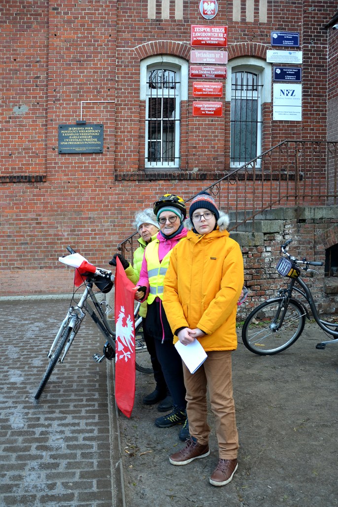 28 grudnia, rajdem rowerowym, uczciliśmy 107 rocznicę Powstania. O godz. 10.00 spotkaliśmy się na ulicy Koszarowej 12, przy budynku Zespołu Szkół Zawodowych nr 2 im. Powstańców Wielkopolskich. To właśnie tutaj, 28 grudnia 1918 roku rankiem, powstańcy dowodzeni przez Jana Bartkowiaka i Ludwika Rządkowskiego, na rozkaz Władysława Wiewiórowskiego opanowali koszary 46. pruskiego pułku piechoty. Władysław Wiewiórowski ze Stanisławem Dzieciuchowiczem zażądali kapitulacji, przejęcia broni oraz amunicji. Września stała się miastem wolnym. W tym roku było nas mało z powodu złych warunków pogodowych – gołoledź na drogach i silne oblodzenie chodników. Ucieszyła mnie obecność 12-letniego Marcela Szykownego z Kaczanowa, który ma olbrzymią wiedzę o wrzesińskich powstańcach. Z ulicy Koszarowej pojechaliśmy na Gnieźnieńską. Tam na tle muralu zrobiliśmy sobie zdjęcie. Następnie podeszliśmy do pomnika Powstańców Wielkopolskich, na cmentarzu parafialnym. Zapaliliśmy znicz, zrobiliśmy fotografię i odwiedziliśmy grobowiec Prądzyńskich, gdzie spoczywa Andrzej Prądzyński, który odegrał znaczącą rolę w wyzwoleniu Wrześni. Marcel Szykowny obszernie opowiedział o Andrzeju Prądzyńskim, który wraz z Piotrem Jarocińskim, 27 grudnia 1918 roku, przebywał w Poznaniu. W nocy przekazali do Wrześni hasło „nie należy dłużej czekać” co oznaczało rozpoczęcie działań powstańczych. Kolejny punkt rajdu to kamienica przy ulicy JP II 6. W tej kamienicy mieszkał Andrzej Prądzyński z rodziną. Drukarnia i księgarnia mieściła się w kamienicy przyległej do Ratusza (dzisiaj Rynek 19 – kamienica ta nie istnieje). Września uczciła Andrzeja Prądzyńskiego nazywając jego imieniem ulicę i rondo. W latach 1999 – 2019 przy ulicy Słowackiego 41 funkcjonowało Gimnazjum nr 2 im. Andrzeja Prądzyńskiego.