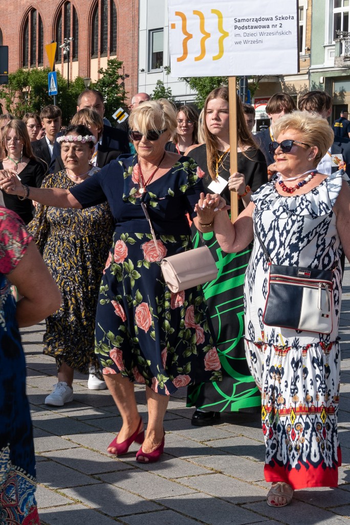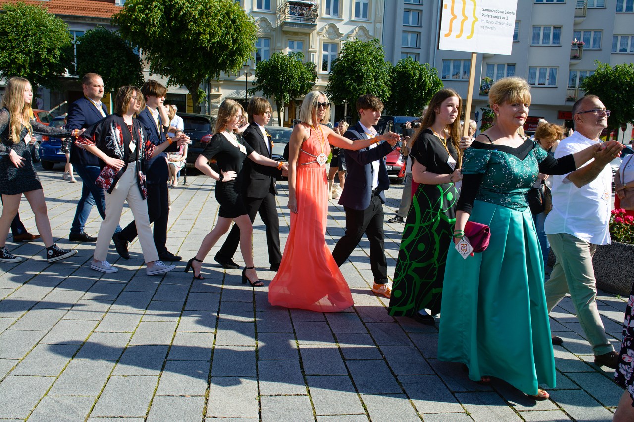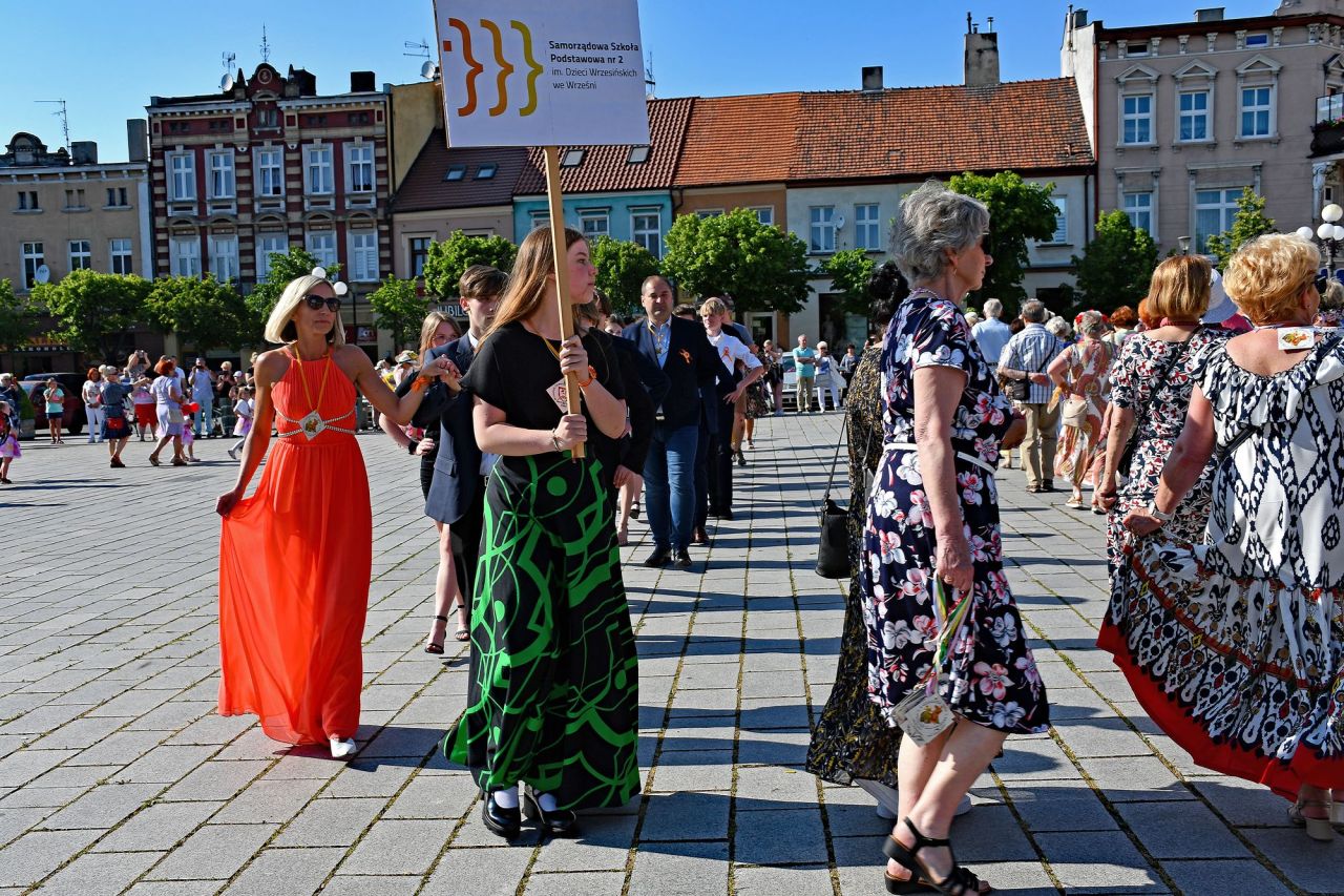W polonezie wzięli udział słuchacze WUTW, dzieci z przedszkola Polne Kwiatki z Gutowa Małego, tancerze z zespołu folklorystycznego w strojach ludowych, uczniowie z Samorządowej Szkoły Podstawowej nr 2 we Wrześni z nauczycielami, oraz wice burmistrzowie Artur Mokracki i Karol Nowak. Cieszymy się, że polonez przyciągnął dużą grupę mieszkańców miasta, którzy brawami nagradzali tańczących. Dziękujemy tancerzom za udział, a publiczności za wsparcie 🙂