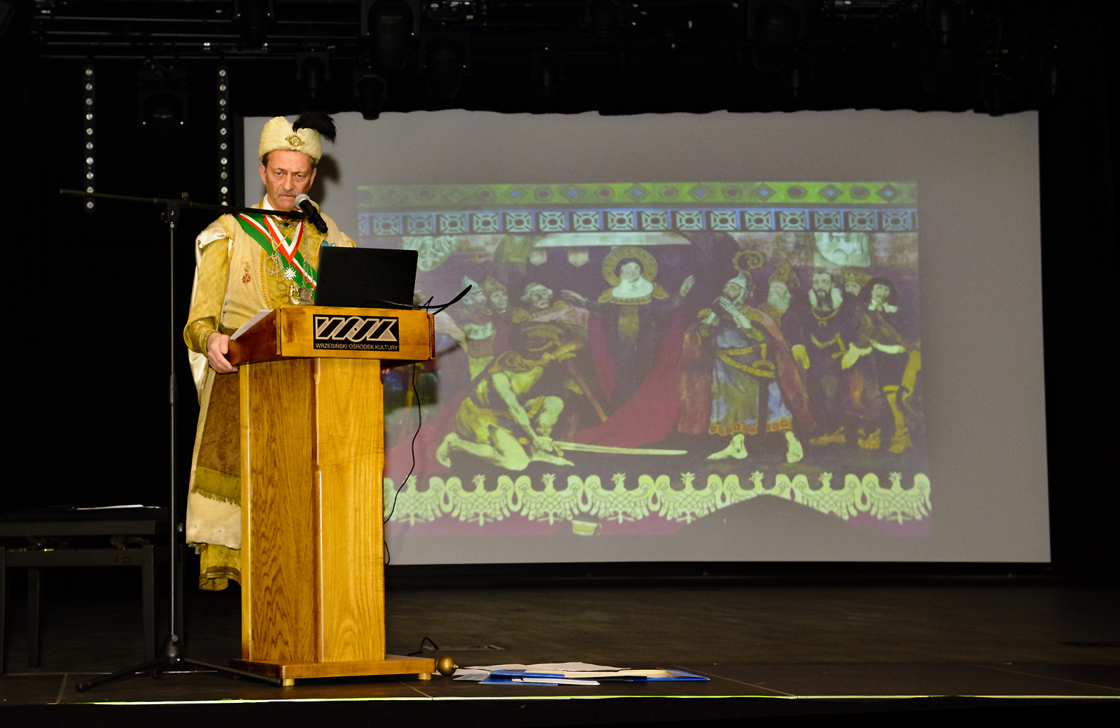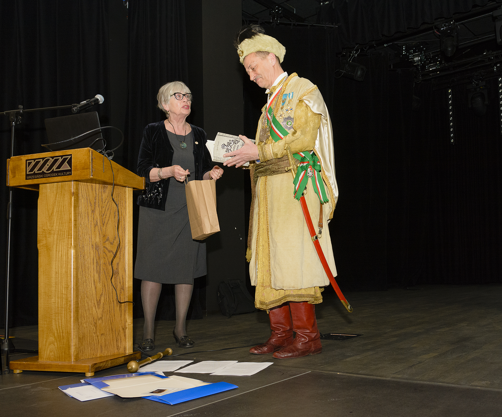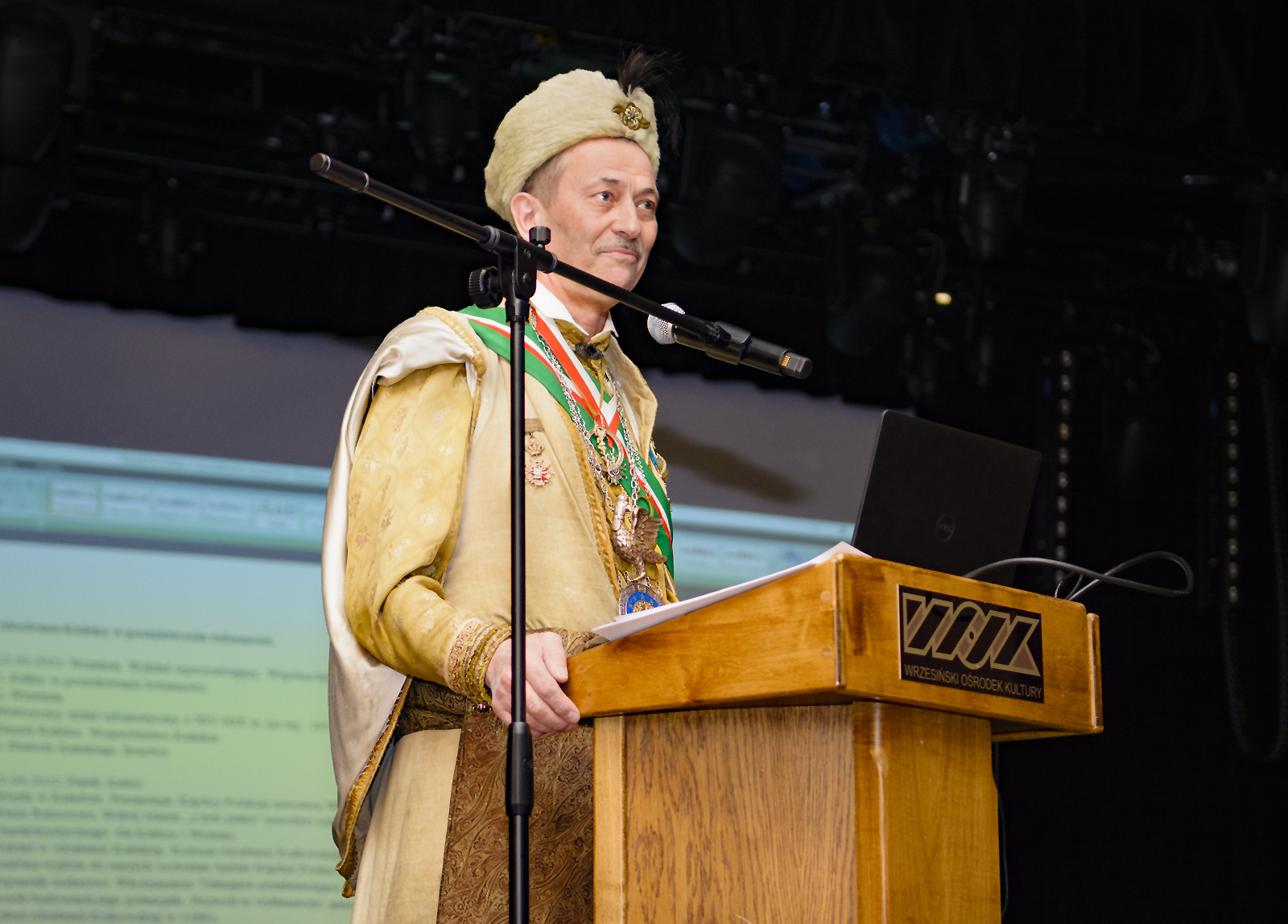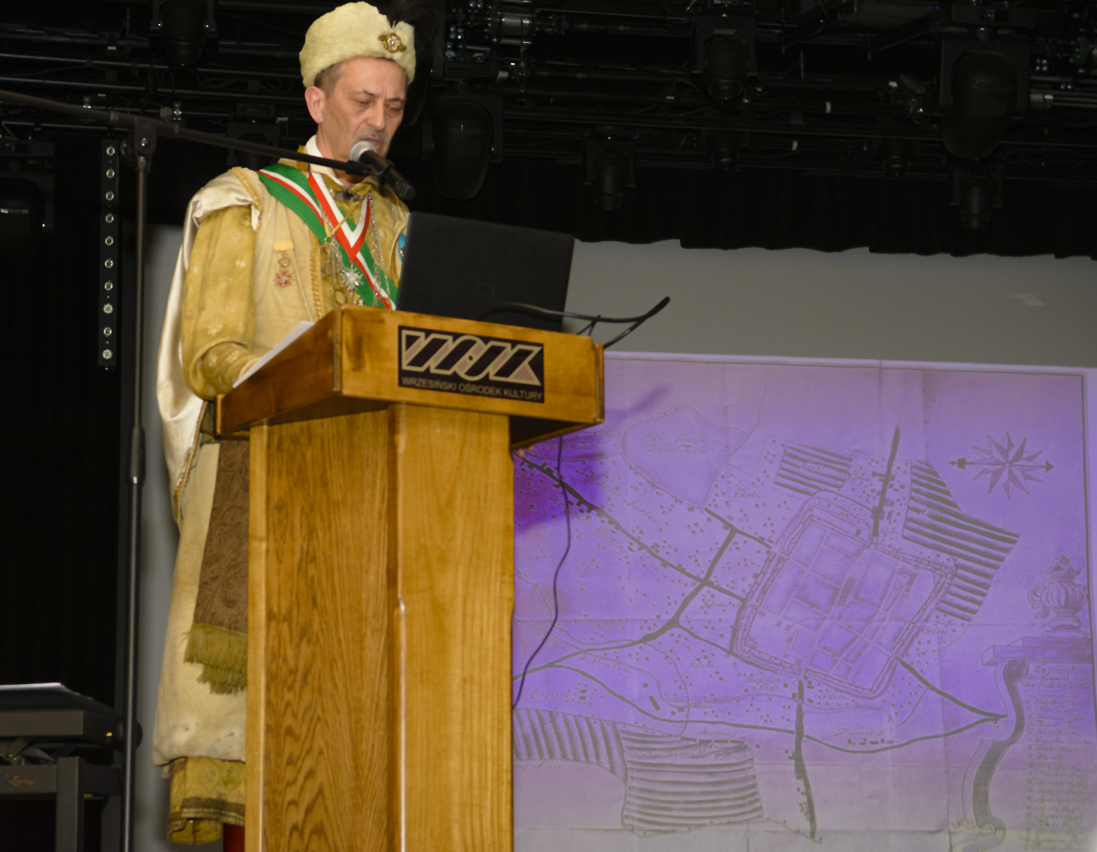 Pan dr Wypych stoi na czele kaliskiego Bractwa Kurkowego i wystąpił przed nami w uroczystym stroju Bractwa – kontuszu.