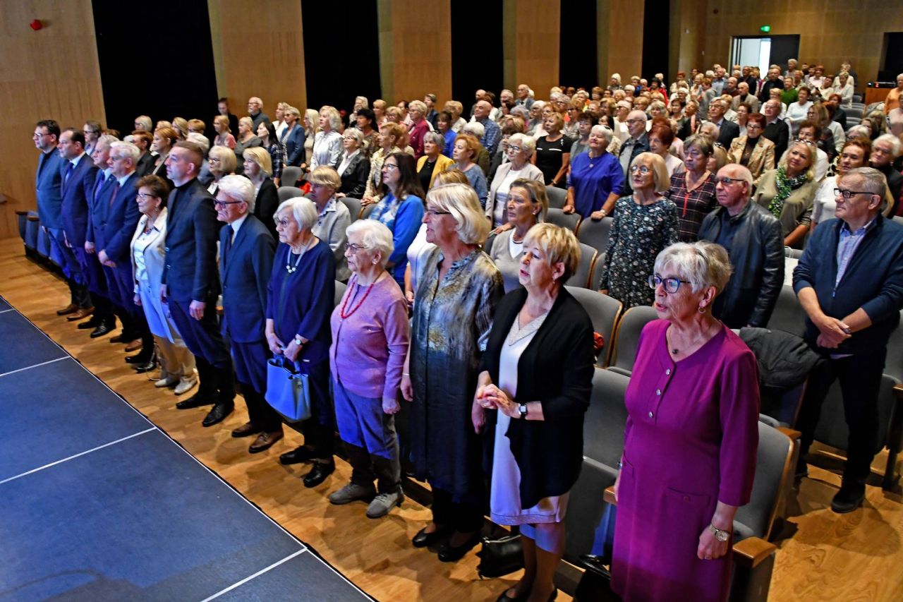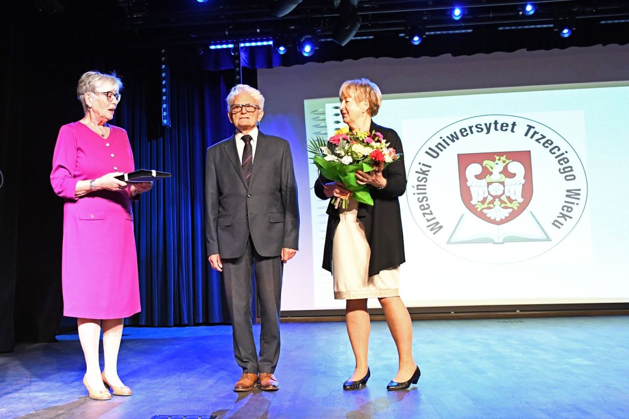 W środę, 18 października, odbyła się już siedemnasta w historii Uniwersytetu uroczysta inauguracja roku akademickiego 2023/2024. Wszystkich powitała z werwą koleżanka Alina Maciejewska, która poprowadziła całą uroczystość. Udział w niej wzięli zaproszeni goście (burmistrz, jego zastępcy, starosta i inni) oraz 306 studentów seniorów. Prezes Zarządu WUTW, Danuta Torzewska, jak zwykle przemówiła do obecnych. Słowa skierowane do słuchaczy studentów to balsam na naszą młodą senioralną duszę. W poczet członków Stowarzyszenia przyjęto 36 nowych studentów seniorów. Prezes Danuta Torzewska wraz z członkami Zarządu wręczyła im indeksy. Podczas uroczystości inauguracji uczestnicy zaśpiewali „Sto lat” szczególnemu Jubilatowi, Eugeniuszowi Paterce, założycielowi Uniwersytetu i jego wieloletniemu prezesowi, który w listopadzie skończy 90 lat. Kolega Eugeniusz jest do dzisiaj aktywnym członkiem WUTW. Były kwiaty i upominek w postaci albumu fotograficznego obrazującego zaangażowanie Jubilata w życie senioralnej uczelni. Wykład inauguracyjny wygłosił burmistrz Nekli, pan Karol Balicki.