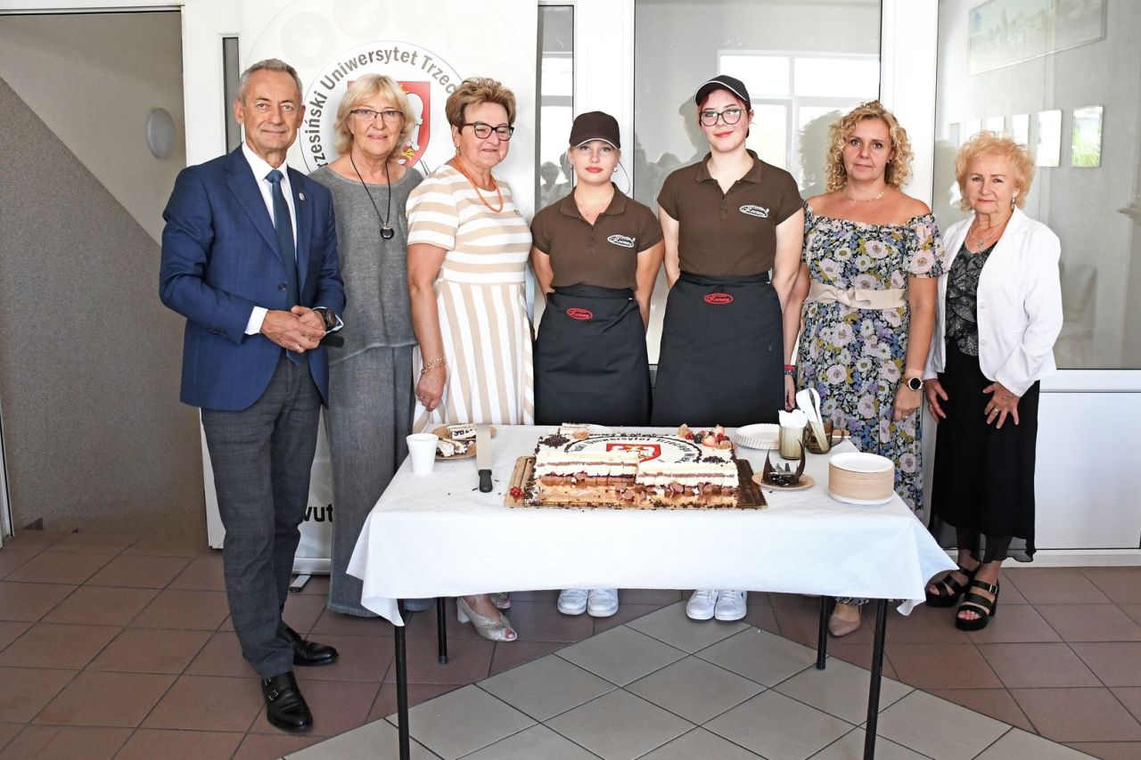 Nie zabrakło również członków Zarządu WUTW i osób pracujących na rzecz uniwersytetu. Od zaproszonych gości były życzenia, gratulacje, kwiaty i upominki. Na zakończenie wszyscy uraczyli się pysznym tortem z ,,Cukierni Kuczora” we Wrześni i w miłej atmosferze wypili kawę.