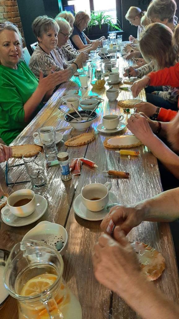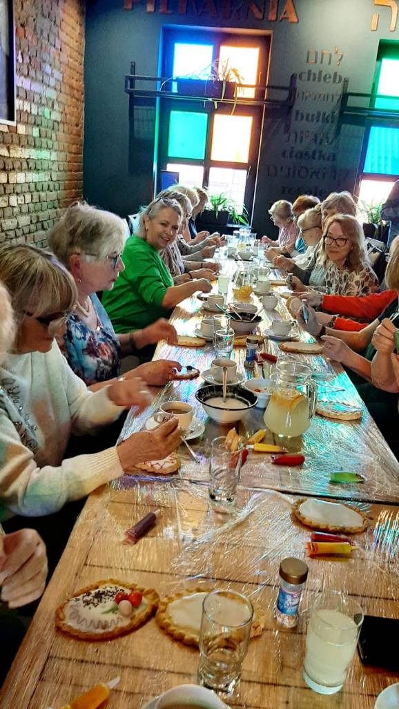 1.04.2025 r. w Restauracji Next Resto Bar, grupa słuchaczek Uniwersytetu Trzeciego Wieku ozdabiała mazurki. Mazurek – dekoracje, które inspirują zgodnie ze zwyczajami, ozdabia się go m.in. roztopioną czekoladą, cytrynowym lukrem czy innymi łakociami. Słuchaczki wykazały się ogromną inwencją twórczą, a ciastka wyglądały jak małe dzieła sztuki. Można było miło spędzić czas i wymienić się doświadczeniami, w przyjaznej atmosferze gospodarzy restauracji, przy kawce i napojach.