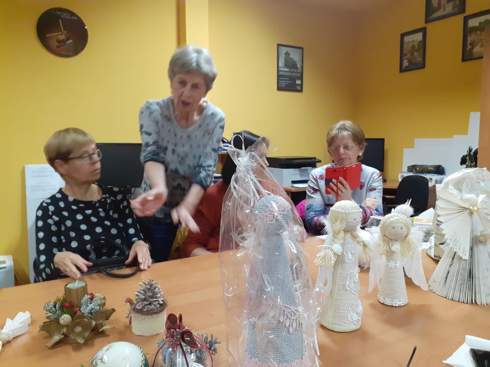 W najbliższym czasie będziemy obchodzić święta Bożego Narodzenia, dlatego zdecydowałyśmy się na przygotowywanie, w trakcie cotygodniowych spotkań, ozdób świątecznych, np. bombki, anioły, krasnale, mikołaje, kartki świąteczne itp.