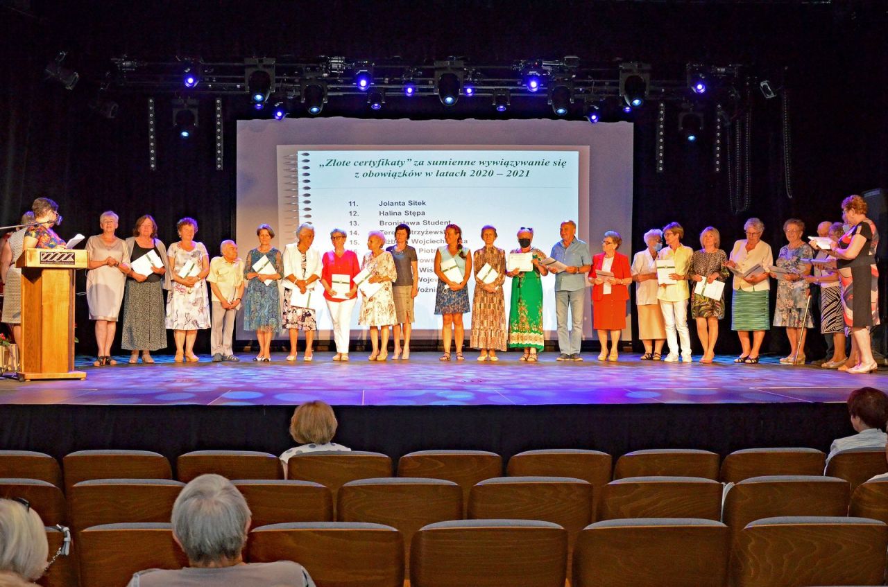 Z ogromną radością na spotkanie 16 czerwca w pięknie odnowionym budynku Wrzesińskiego Ośrodka Kultury spieszyli słuchacze/studenci WUTW. To właśnie tam odbyło się podsumowanie pracy WUTW za okres dwóch lat. W ubiegłym roku nie dane było spotkać się nam z powodu pandemii. Uroczystej inauguracji roku akademickiego 2020/2021 też nie było. Słuchacze nie spotykali się z powodu obostrzeń już od połowy października. Dopiero w maju, kiedy nastąpiły złagodzenia pandemicznych obostrzeń, uniwersytet zaczął tętnić życiem. Sekcja rowerowa pojechała na pierwszy rajd po przerwie. Wznowione zostały wyjazdy na basen do Słupcy. Sekcja regionalna zaprosiła chętnych do historycznych spacerów po Wrześni, które cieszyły się dużym powodzeniem. Sekcja nordic walking spotykała się nieprzerwanie, bez względu na pogodę maszerując po lasach Nowego Folwarku. Grupa wolontariatu, wspomagana czynnie przez Zarząd, uczestniczyła w projekcie Towarzystwa Inicjatyw Twórczych „”ę” z Warszawy i zorganizowała dwie imprezy pod hasłem „Spotkajmy się na ławeczce”. Były to warsztaty popularyzujące nordic walking dla wszystkich chętnych i piknik z akcentem historycznym dla dzieci zorganizowany przy współpracy z Samorządową Szkoła Podstawową nr 1.