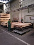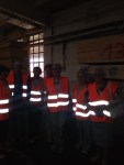Przed fabryką powitał serdecznie nas wszystkich pan prezes Adam Jasiński. Podzieliliśmy się na dwie grupy. Jedna otrzymała kamizelki ochronne i udała się na zwiedzanie hal produkcyjnych, druga wysłuchała opowieści o historii zakładu i obejrzała prezentację o najnowszych osiągnięciach fabryki. W 1894 roku uruchomiono tartak, a w 1921 fabrykę parkietów. W 1922 fabrykę kupił Bolesław Bystrzycki i znacznie ją rozbudował. W 1925 roku na jej terenie powstała kaplica, teraz już zapomniana i podupadająca. W 1953 roku fabryka otrzymała nową nazwę: Orzechowskie Zakłady Przemysłu Sklejek. Po wielu perypetiach i przekształceniach jest to teraz Sklejka Orzechowo S.A., która modernizuje się i rozwija od 4 lat. Dziękujemy panu prezesowi za możliwość zwiedzenia Sklejki i odpowiedzi na najróżniejsze pytania.